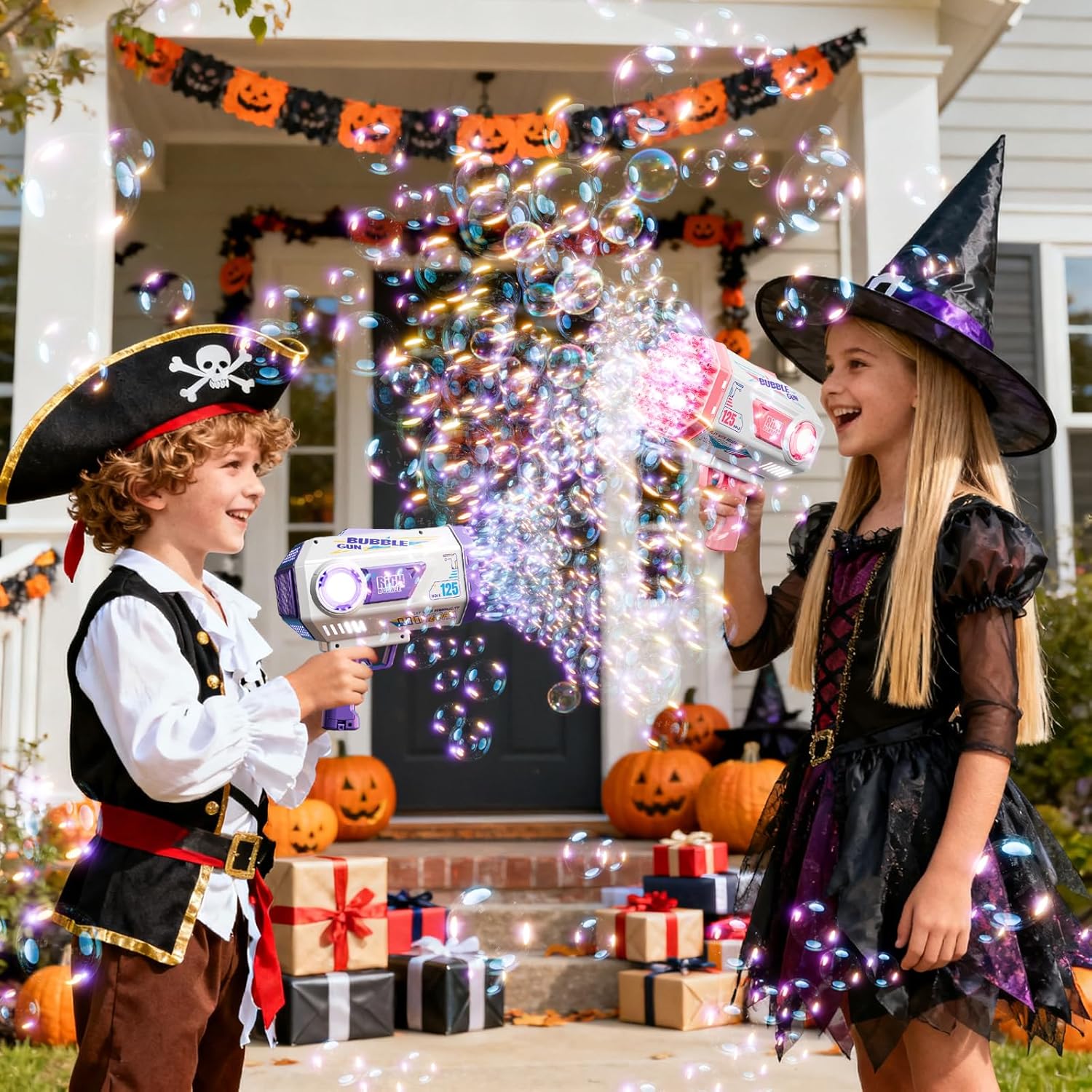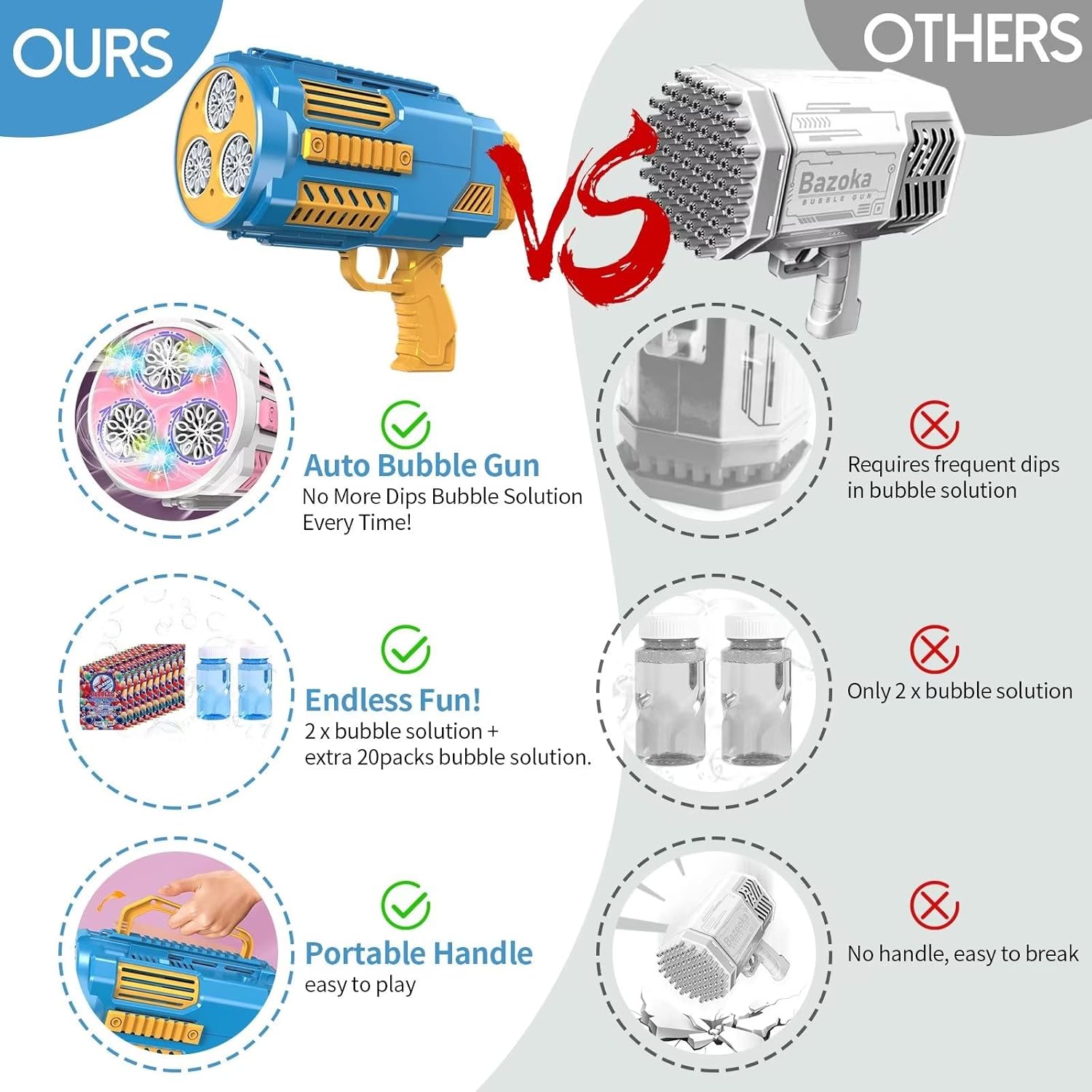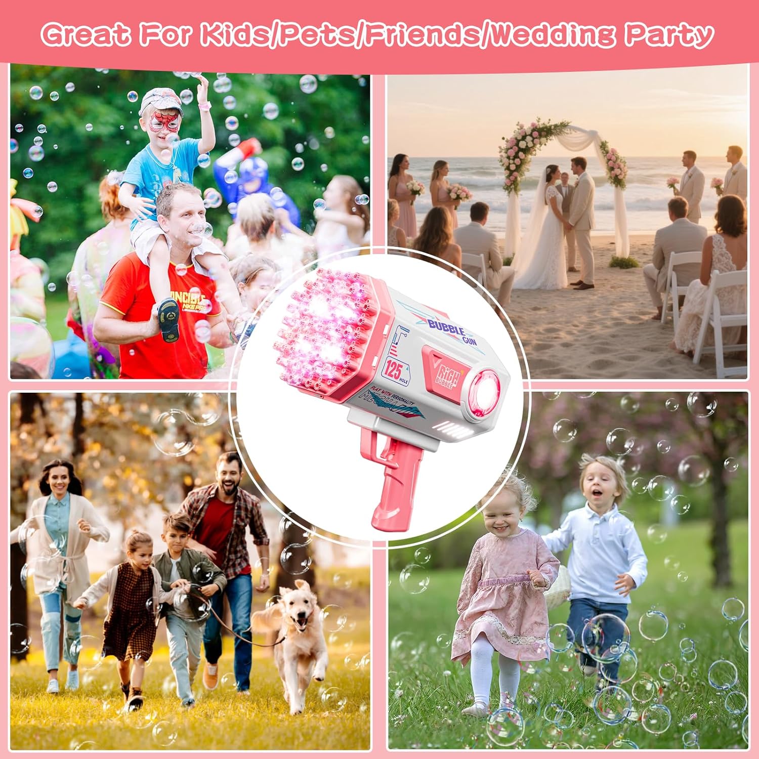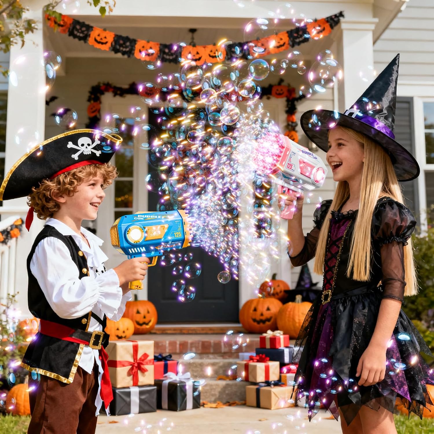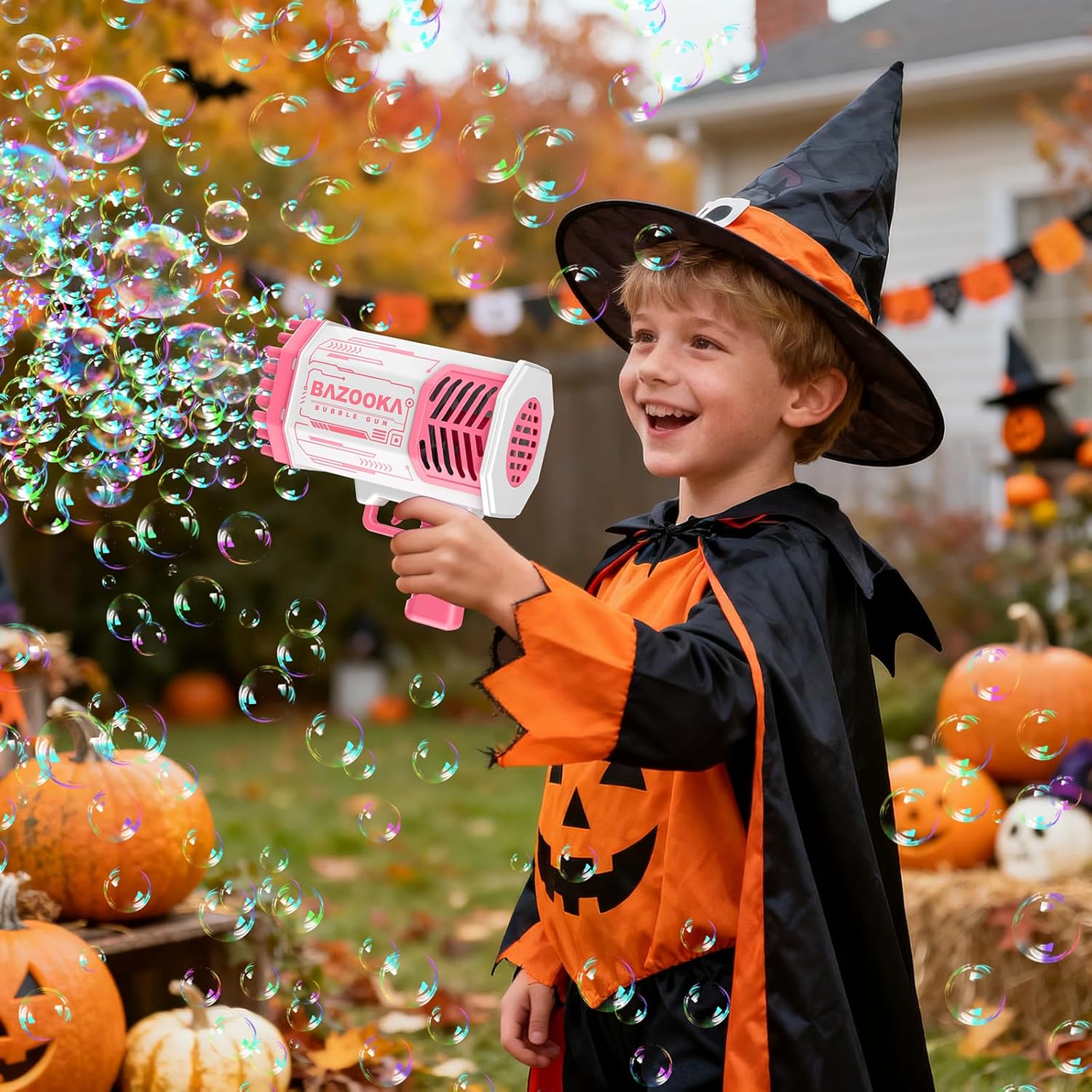This newest 69-hole bubble machine is made of ABS, kid-safe and non-toxic. The solution passed all safety tests (TRA, USP51, USP61, etc.). Very safe for children's skin and face. Do not drink bubble solution. Whether it is used as a bubble machine or as a small electric fan during rest, please do not put your hands in it when working.