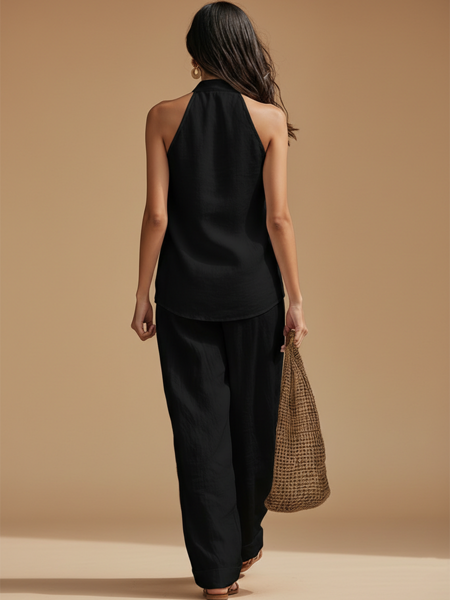 This Casual Urban Style White Linen V-neck Sleeveless Top and Wide Leg Pants Set offers an effortlessly chic look perfect for modern-day explorers. Crafted from high-quality linen. this set is designed to deliver both comfort and elegance. making it an excellent addition to any wardrobe.