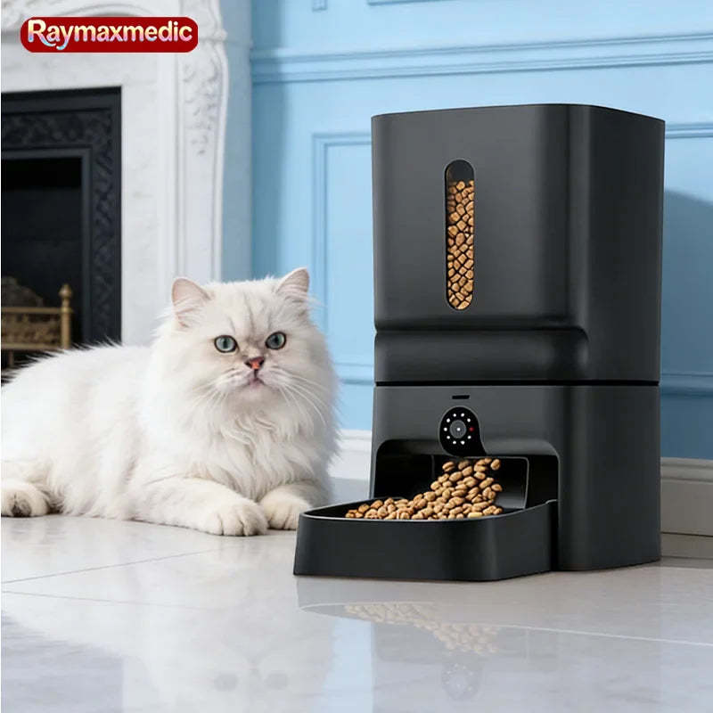 Raymax 7L Smart Automatic Pet Feeder with 1080P Night Vision Camera. Dual-Band WiFi (2.4G/5G). App Control. Voice Call. 7L Dispenser for Cats & Dogs