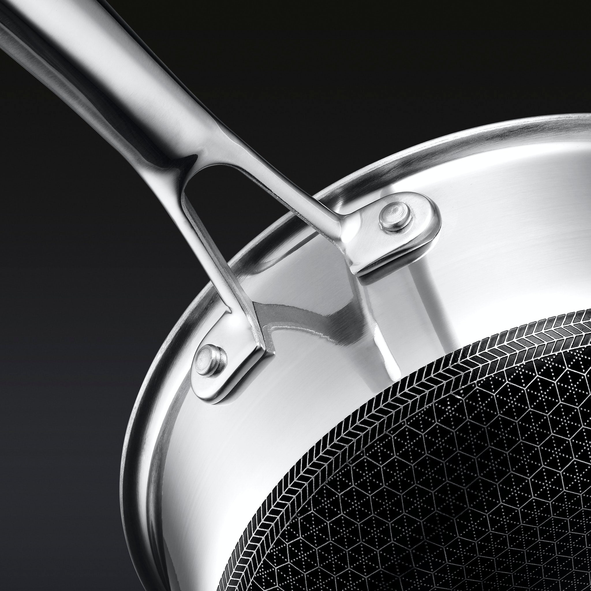 The HexClad 2 Litre Hybrid Pot with Lid is perfect for everything from making sauces. heating liquids. cooking grains. and reheating. It is a small but versatile staple in any cook's kitchen. Our hybrid technology allows for easy clean-up. durability. and even heat distribution.