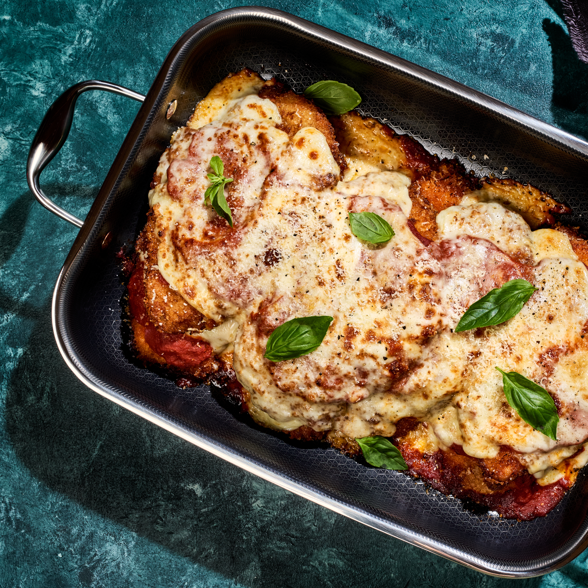Everyday meals are a snap with the right pans. so we've expanded our roasting pan range with this all-new set of smaller sizes. Ideal for all your weeknight go-tos like cottage pie. enchiladas. roasted salmon and more. they're oven-safe to 480ºC. Just pop 'em in the dishwasher when you're done!