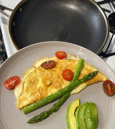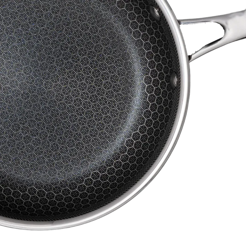 HexClad distributes heat swiftly. Start on lower temperatures; medium with HexClad equals medium-high with others.
