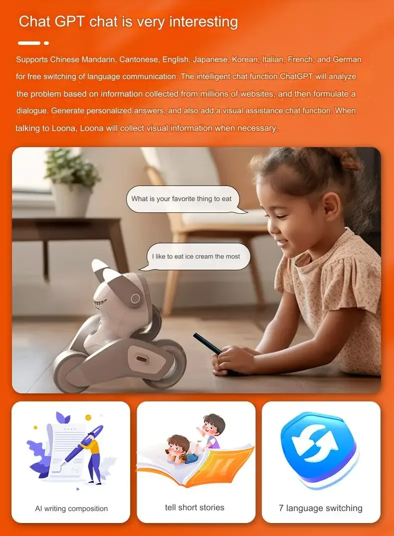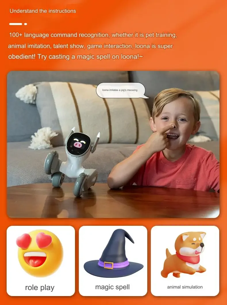 Loona AI Smart Robot Dog – Interactive Educational Cartoon Toy with Mecanum Wheels. Battery Powered. Baby Toy for 0–36 Months