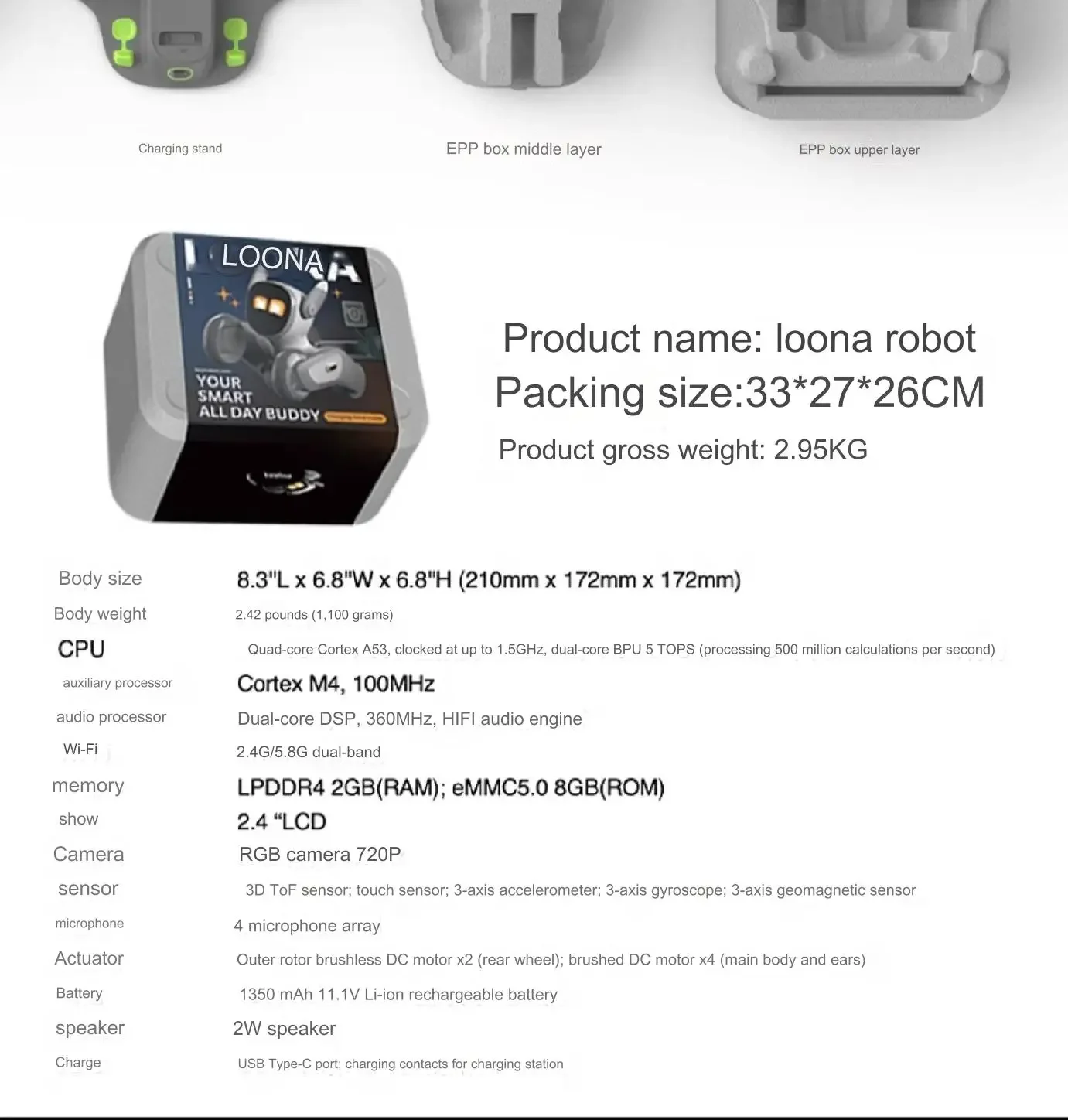 LPDDR4 2GB(RAM);eMMC5.0 8GB(ROM)