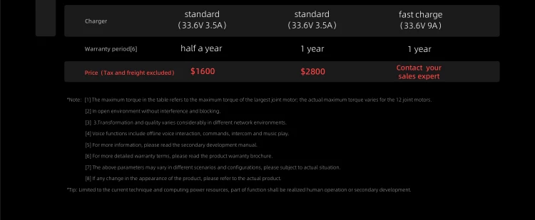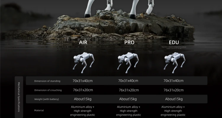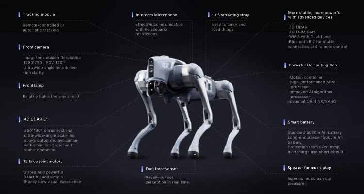 * 【Meet the Go2 Robot Dog】The wounderful toy for beginners and experienced robot enthusiasts alike! With basic gaits like walking and running. the Go2 Air model is great for beginners. while the Go2 Pro offers more advanced gaits for a greater challenge.(Please note that the inverted and flipping movements shown in the promotional video are currently not available.) * 【Intelligent Obstacle Avoidance】Go2 is equipped with Unitree's self-developed 4D LiDAR sensor L1. which has a 360x90°hemispherical ultra-wide-angle perception capability and an extremely low blind zone. With a minimum detection distance of 0.05m. it can help Go2 achieve all-terrain perception. When paired with the accompanying remote control (available only with the Go2 Pro model). the robot dog can automatically avoid obstacles while walking. * 【Smartphone App Integration】The Go2 robot dog is equipped with a front-facing camera that captures high-resolution picture at 1280 x 720 pixels with a wide-angle lens. In addition. the Go2 Pro model features voice recognition technology for smart and intuitive control. * 【Improved Battery and Longer Battery Life】The Go2 robot dog is equipped with a battery having a capacity of 8000mAh. providing a battery life of 1 to 2 hours. * 【Joint Performance Improvement】The Go2 robot dog's joint performance has been significantly improved with a peak torque of 45N.m. The new internal wiring process and knee joint motor area with heat pipe cooling system effectively reduce temperature. ensuring optimal performance and durability. * 【Regarding Warranty】The warranty period for Go2 Air is six months. and for Go2 Pro. it is twelve months. Please be advised that the warranty does not cover damage caused by human factors or malfunctions resulting from self-disassembly or modification.