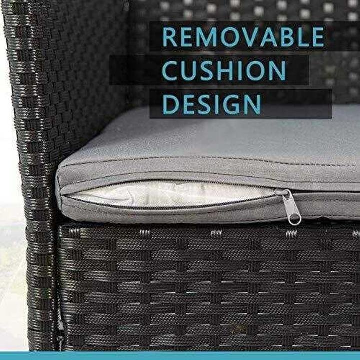 ▽Stylish and Low-maintain▼It can last a long time in a low-maintenance way. PE wicker and glass top could be cleaned with a soft cloth to wipe the dust. Cushion covers with quick zipper are removable for cleaning.