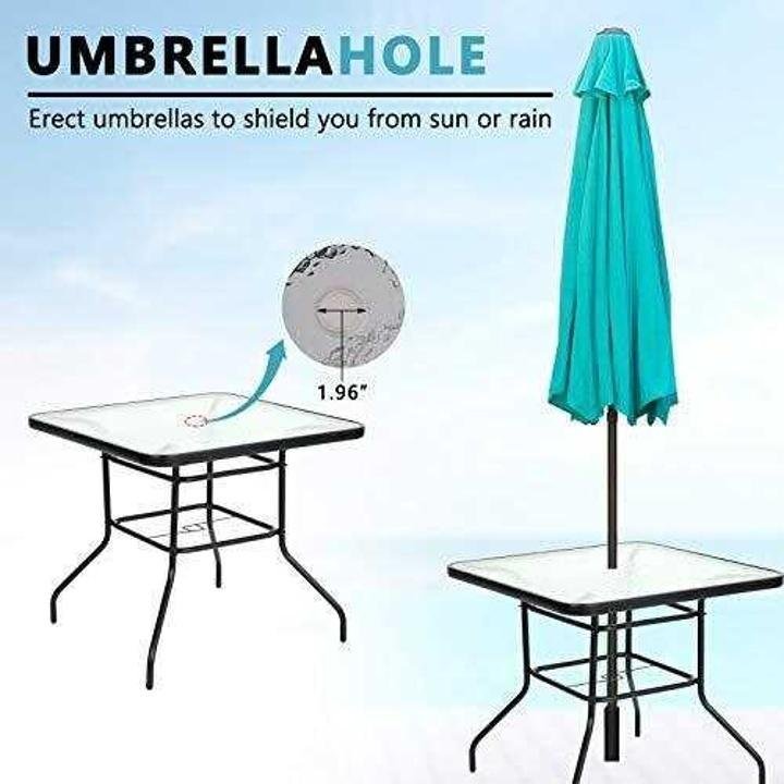 ▽Durable Construction▼ The table is constructed from strong galvanized steel frame and tempered table top. There also a 1.57-inch hole allows to add the umbrella for shade. 4 chairs are made of heavy-duty steel frame and wicker.