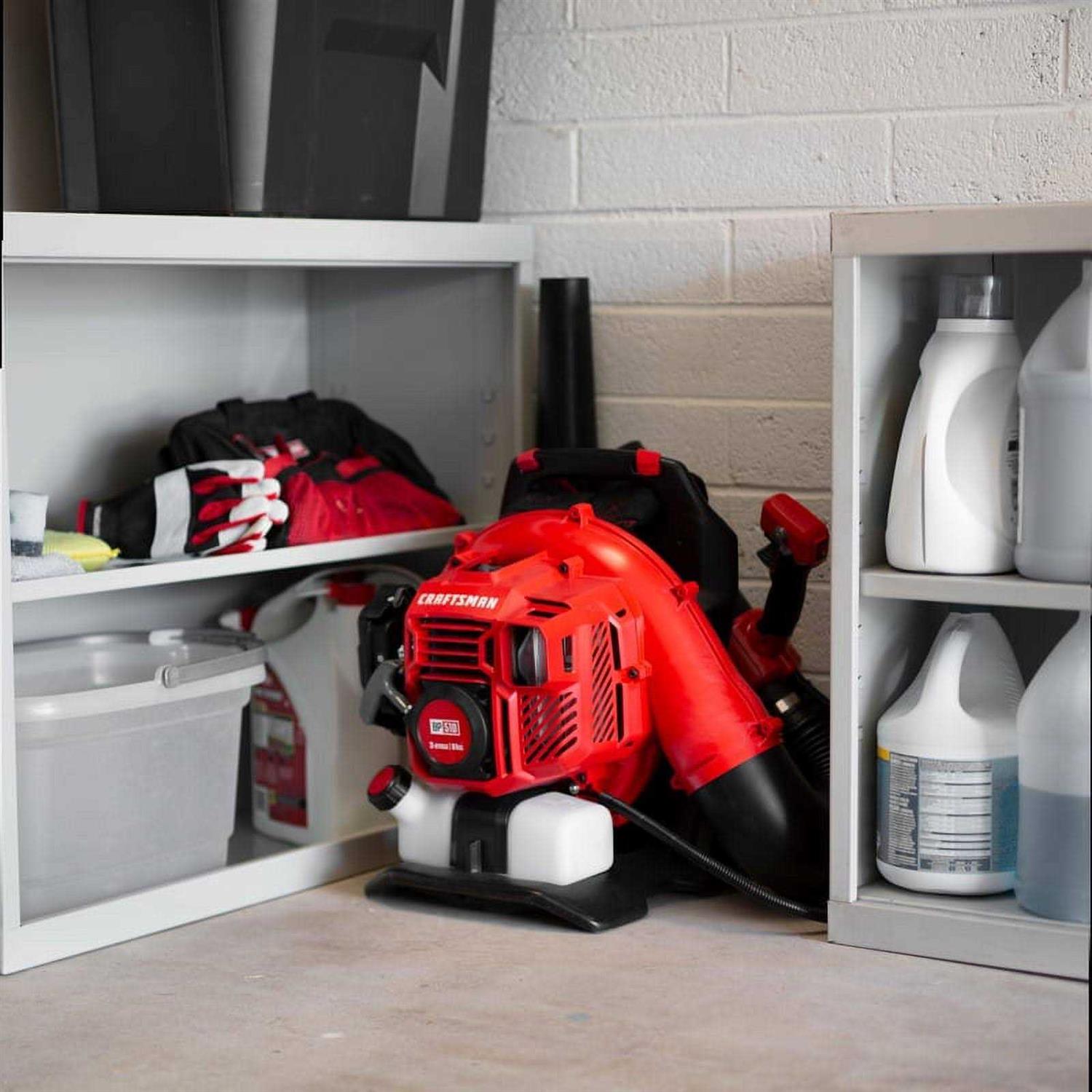 Tackle your debris clearing needs with the power of the CRAFTSMAN BP510 Gas Backpack Leaf Blower. Equipped with a 51 cc full-crank engine. clearing leaves and yard debris is a breeze with air volume and air speed up to 600 CFM/220 MPH. The BP510 is designed with comfort in mind. with an extra padded adjustable harness and chest strap that evenly distribute weight for all-day ease of use. The comfortable overmold handle helps absorb and reduce vibration for added operator comfort. It features a tube storage strap for compact. space-saving storage. leaving extra room in your garage or shed. Be ready to handle any task needed whether it is blowing leaves after a blustery summer storm or simply clearing some debris from around this hosue. This Craftsman Backpack Leaf Blower makes tough tasks feel seamless.