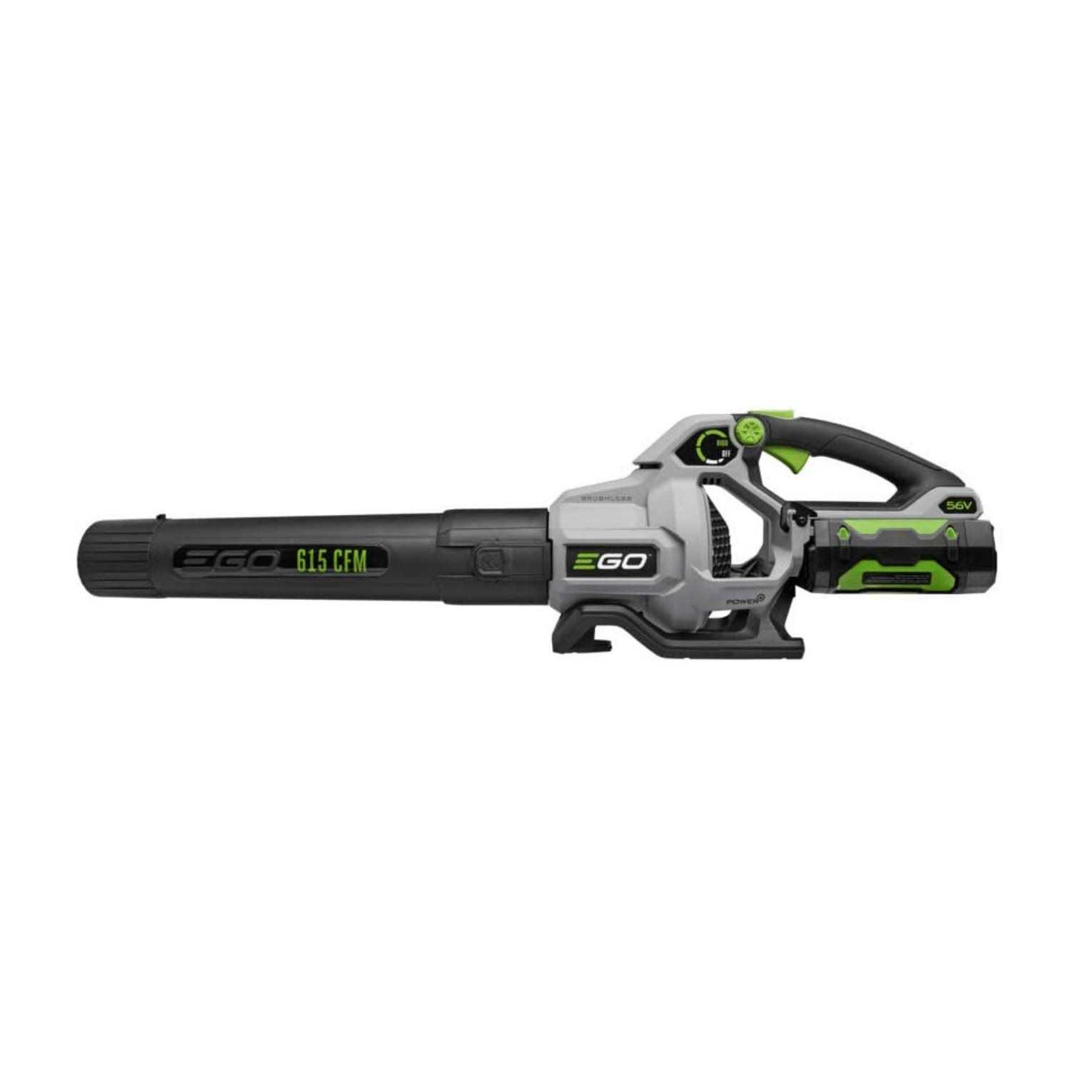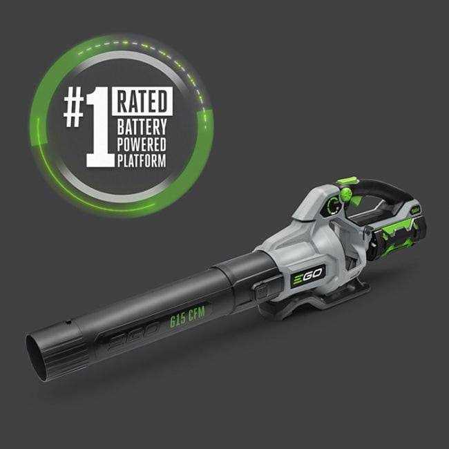 Ego Power+ Blower 615 CFM Kit 2.5Ah Arc Lithium Battery & Power+ Standard Charger (LB6151)Turbo Button delivers a staggering 615 CFMOver 75-minutes of run time: 10-minutes on Turbo 100 minutes on low. with 2.5Ah Battery 100 minutes on low with 2.5Ah BatteryVariable-speed control dial delivers 200-480 CFMHigh-Efficiency Brushless MotorWeather-Resistant ConstructionIncludes Tapered NozzleErgonomic design for superb balance and user comfort50-minute charge time when used with the recommended 2.5Ah ARC Lithium battery and Power+ Standard ChargerWith air speeds up to 170 MPH. this blower can move heavy debris with ease. The lock-on speed-control dial allows you to adjust your speed from 200 CFM to 480 CFM for ultimate control. When you are ready to power through heavy debris. hit the turbo button for 615 CFM! All this industry leading power is combined with industry leading run times; over 75-minutes of continuous run time. The high-efficiency brushless motor delivers longer run time. low vibrations. and an extended motor life. Turbine fan engineering. inspired by advanced aeronautics technology. performs better than premium gas-powered models. The included tapered nozzle makes clearing debris in all conditions easy. EGO LB6151 This quiet. lightweight and compact blower gets the job done faster and quieter than gas! Experience Power Beyond Belief without the noise. fuss and fumes. Compatible with all EGO POWER+ ARC Lithium batteries.