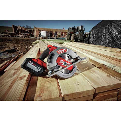 Designed for the carpenter. remodeler and general contractor the M18 FUEL 7-1/4 in. Circular Saw from Milwaukee generates the power of a 15 Amp corded saw. cuts faster than a 15 Amp corded saw and gives users up to 750 cuts per charge. The POWERSTATE Brushless Motor provides 5.800 RPM and higher speeds under load for corded cutting performance. REDLINK PLUS intelligence ensures maximum performance and protection from overload. overheating and over discharge. The M18 REDLITHIUM High Output HD12.0 battery delivers unmatch run-time in all applications. All magnesium guards and shoe delivers extreme durability for jobsite conditions. A built-in rafter hook offers quick and easy storage and an electric brake stops the blade quickly after cuts are complete for maximum productivity. Features: