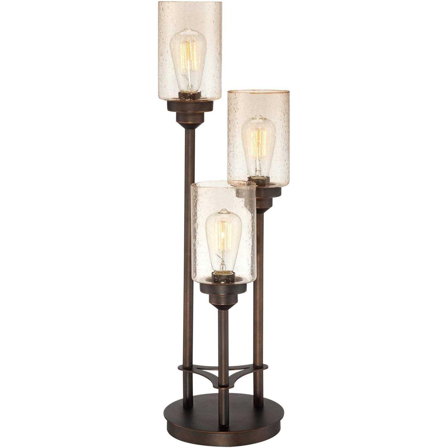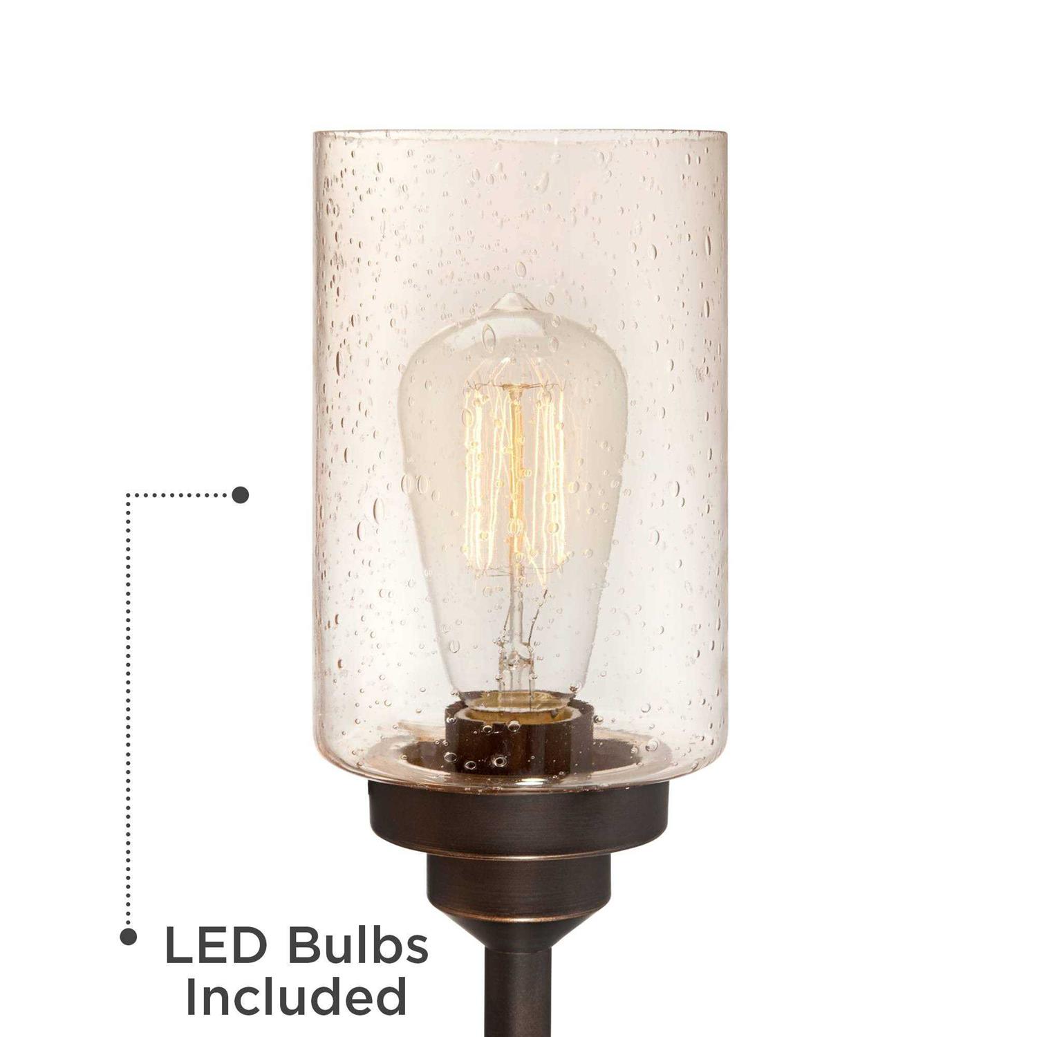 Franklin Iron Works Libby Rustic Farmhouse Table Lamp 30 Tall Bronze Metal LED Amber Seeded Glass Shade for Bedroom Living Room Bedside Nightstand
